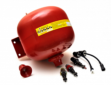 Модуль порошкового пожаротушения состоит из стального корпуса, внутри которого находится огнетушащий порошок. Генератор газа, корпус узла запуска, разрывная мембрана, плотно прижатая выпускным насадком и резьба G1 для присоединения распылителя.